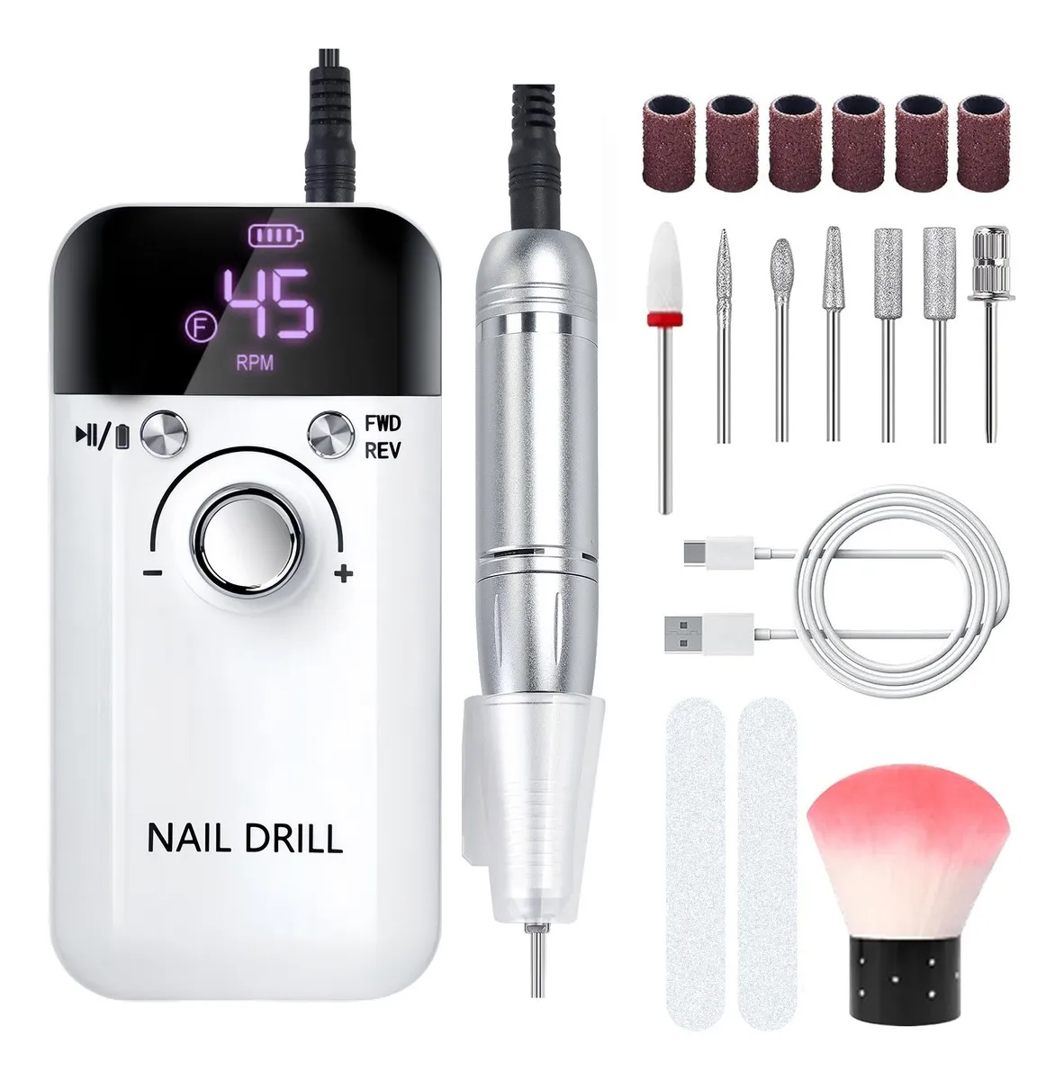 51% OFFPulidor De Uñas 45000 Rpm Esmeril Profesional Drill Portátil, Kit De Taladro De Uñas Inalámbrico Recargable Ultra Power Con Accesorios