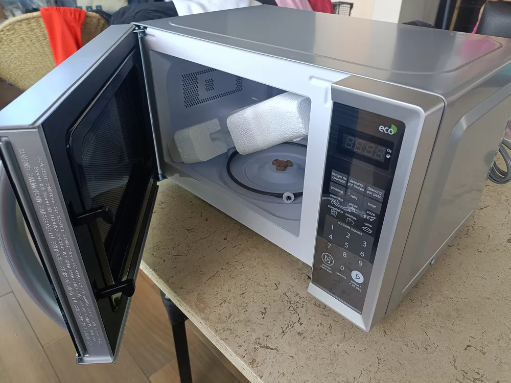 Para cocineros express o amantes del arte del buen comer, un microondas es un aliado indiscutible de la cocina. Ahorra tiempo, lleva los alimentos a su punto de cocción o vuelve a deleitarte con los sabores de los platos que ya preparaste. Variedad de funciones y programas Para destacar, este microondas cuenta con 10 diferentes niveles de cocción y programas. Disfruta todas tus comidas con mínimo esfuerzo y máximo sabor. Diseño innovador y accesorios La libertad es absoluta, ya que podrás llevarlo adonde desees cuando te mudes. Su display te permitirá ser más preciso al momento de seleccionar el tipo de comida, configurar el tiempo y la función para cocinar. Además, presenta un excelente sistema de seguridad con traba especial para las personas más pequeñas de la familia. Por último pero no menos importante, cuenta con un diseño moderno: una puerta de espejo elegante y minimalista que se adapta a cualquier cocina. Capacidad y eficiencia Con un volumen de 20 litros vas a poder dis
