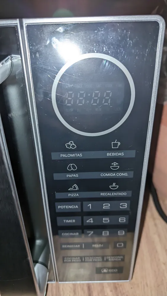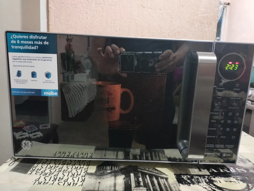 Para cocineros express o amantes del arte del buen comer, un microondas es un aliado indiscutible de la cocina. Ahorra tiempo, lleva los alimentos a su punto de cocción o vuelve a deleitarte con los sabores de los platos que ya preparaste. Variedad de funciones y programas Para destacar, este microondas cuenta con 10 diferentes niveles de cocción y programas. Disfruta todas tus comidas con mínimo esfuerzo y máximo sabor. Diseño innovador y accesorios La libertad es absoluta, ya que podrás llevarlo adonde desees cuando te mudes. Su display te permitirá ser más preciso al momento de seleccionar el tipo de comida, configurar el tiempo y la función para cocinar. Por último pero no menos importante, cuenta con un diseño moderno: una puerta de espejo elegante y minimalista que se adapta a cualquier cocina. Capacidad y eficiencia Con un volumen de 0.7 ft³ 20litros vas a poder disfrutar comidas para compartir con tus amistades y familiares. Ofrece una potencia máxima de 900 watts que