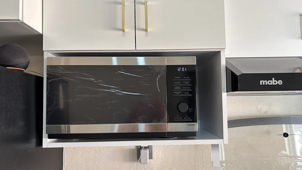 No pierdas tiempo en la cocina. En simples pasos, puedes disfrutar de tus comidas favoritas gracias a la tecnología y evolución de Samsung. El mismo cuenta con recetas preprogramadas para tu comodidad. Cocina fácilmente todo, desde arroz integral hasta pechuga de pollo deshuesada y filetes de salmón a la parrilla, con la garantía de que el resultado será comida fresca y sabrosa. Diseño innovador y accesorios La libertad es absoluta, ya que podrás llevarlo adonde desees cuando te mudes. Su display te permitirá ser más preciso al momento de seleccionar el tipo de comida, configurar el tiempo y la función para cocinar. Además, presenta un excelente sistema de seguridad con traba especial para las personas más pequeñas de la familia. Por último pero no menos importante, cuenta con un diseño moderno: una puerta de espejo elegante y minimalista que se adapta a cualquier cocina. Capacidad y eficiencia Con un volumen de 32 litros vas a poder disfrutar comidas para compartir con tus amistad