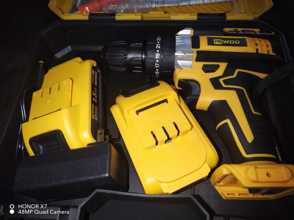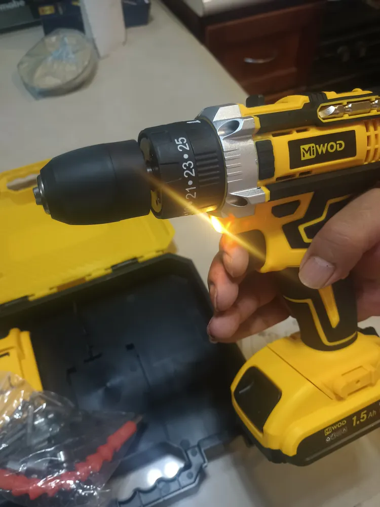 1.Dos baterías y cargador rápido: Taladro eléctrico 2 *1.5Ah baterías de iones de litio de alta capacidad, durable, usted no tiene que preocuparse de quedarse sin energía en el medio del proyecto. Se tarda 2-3 horas para cargar completamente, por lo que el taladro inalámbrico se puede utilizar en cualquier momento sin restricciones, que le trae más comodidad y ahorrar mucho su valioso tiempo. 2. Alto rendimiento y amplia aplicación: La transmisión inalámbrica con 25 ajustes de embrague ajustables y 150W de potencia es adecuada para la mayoría de los proyectos domésticos. Por ejemplo, construcción de cercas, reparación de muebles, construcción de casas de mascotas y así sucesivamente. 3.Diseño ergonómico: La herramienta ligera está diseñada para satisfacer las necesidades del usuario con un mango de agarre suave que proporciona comodidad y control total durante el uso sin fuerza excesiva. 4.El taladro de impacto inalámbrico es fácil de manejar: 2 velocidades y cambios positivo y nega