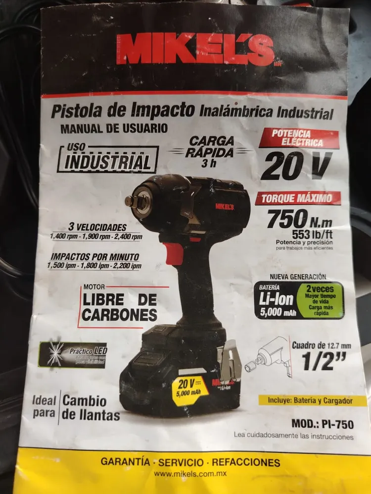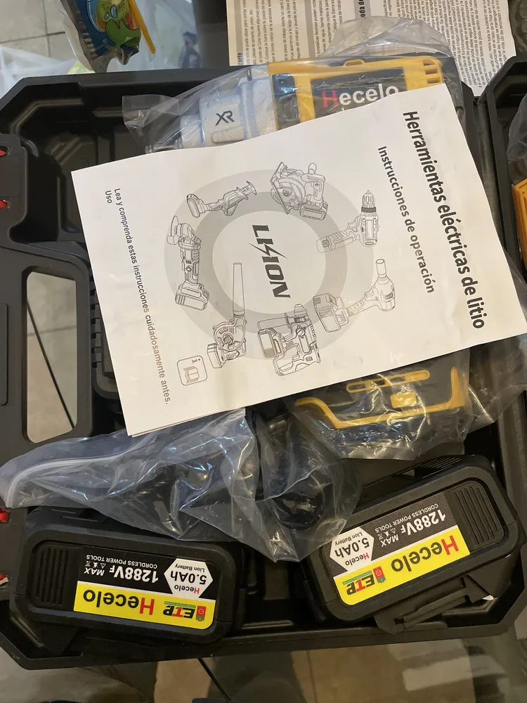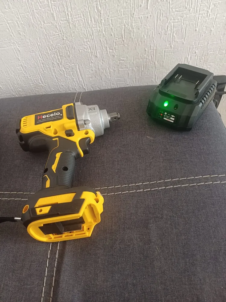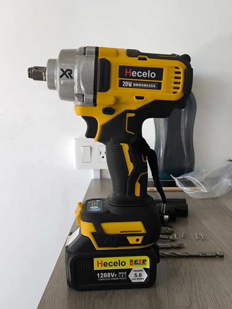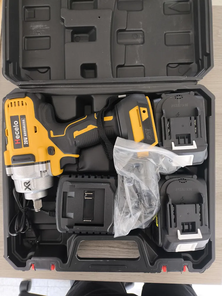 Nombre del producto: Llave de impacto sin escobillas Hecelo Potente motor y par: La llave de impacto de 21 V viene con un potente motor con un par máximo de 990 Nm (4200 RPM). Se puede utilizar para quitar tuercas y tornillos oxidados o demasiado apretados. Mejora la eficiencia de su trabajo. Motor sin escobillas duradero: Juego de llaves de impacto multifuncionales: La llave de impacto de 1/2 es excelente para quitar llantas y ruedas de motocicletas, así como para tareas domésticas diarias, bastidores grandes, reparaciones de equipos pesados y ensamblaje de productos. Cuenta con un gatillo de velocidad variable para controlar fácilmente la velocidad de rotación. Batería 1288VF y cargador rápido: La llave eléctrica a batería 1288VF dura el doble que otras llaves de impacto. El kit incluye cargador rápido. Llave de impacto multifuncional tres en uno: La llave de impacto de 1/2 también se puede utilizar como taladro de impacto y destornillador. Es adecuada para diferentes situa