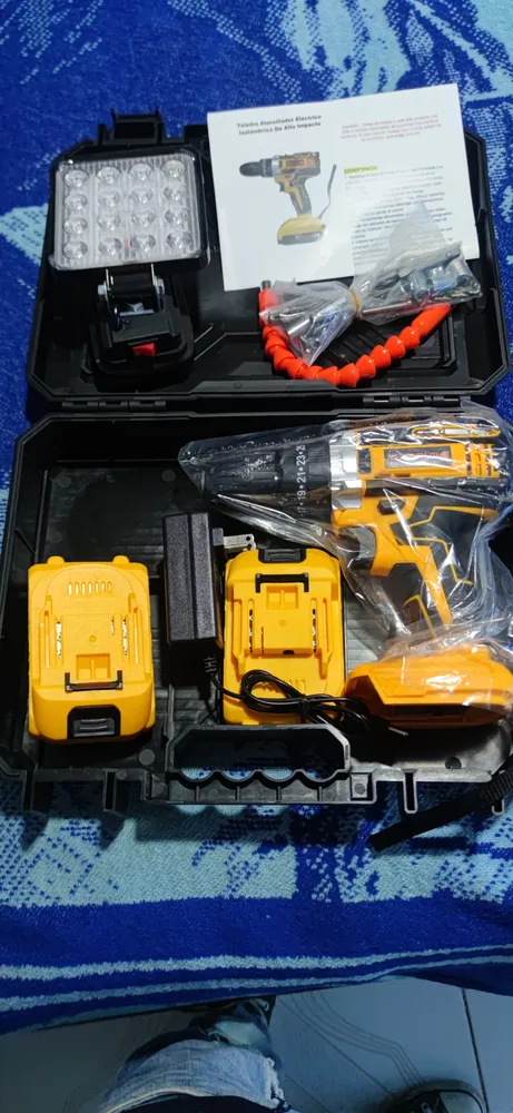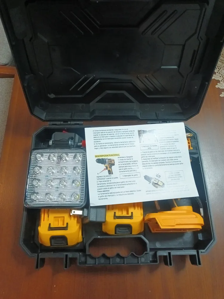 Características del producto: 1.Luz de Trabajo de Alto Brillo y Batería de Larga DuraciónLe hemos presentado cuidadosamente una luz de trabajo de 16 cuentas con un brillo de 3000lm y una distancia de luz de hasta 100m, lo que asegura que el trabajo sea claramente visible en varios ambientes.Batería de Li-ion de alta capacidad de 6500mAh, combinada con un cargador rápido, proporciona una fuerte resistencia y un tiempo de trabajo más largo. 2.300w Motor de Cobre Sin Escobillas Este atornillador eléctrico está impulsado por un motor de cobre sin escobillas de alto par, a diferencia de otros motores de aluminio revestido de cobre en el mercado, tiene un par máximo de 65nm y una potencia extrema de hasta 300 w, lo que garantiza un alto rendimiento y una larga vida útil, que es 1,5 veces la de un motor de escobillas de carbón tradicional. El motor reduce el ruido y la fricción, mejora la eficiencia energética y es más respetuoso con el medio ambiente y eficiente energéticamente, y puede per