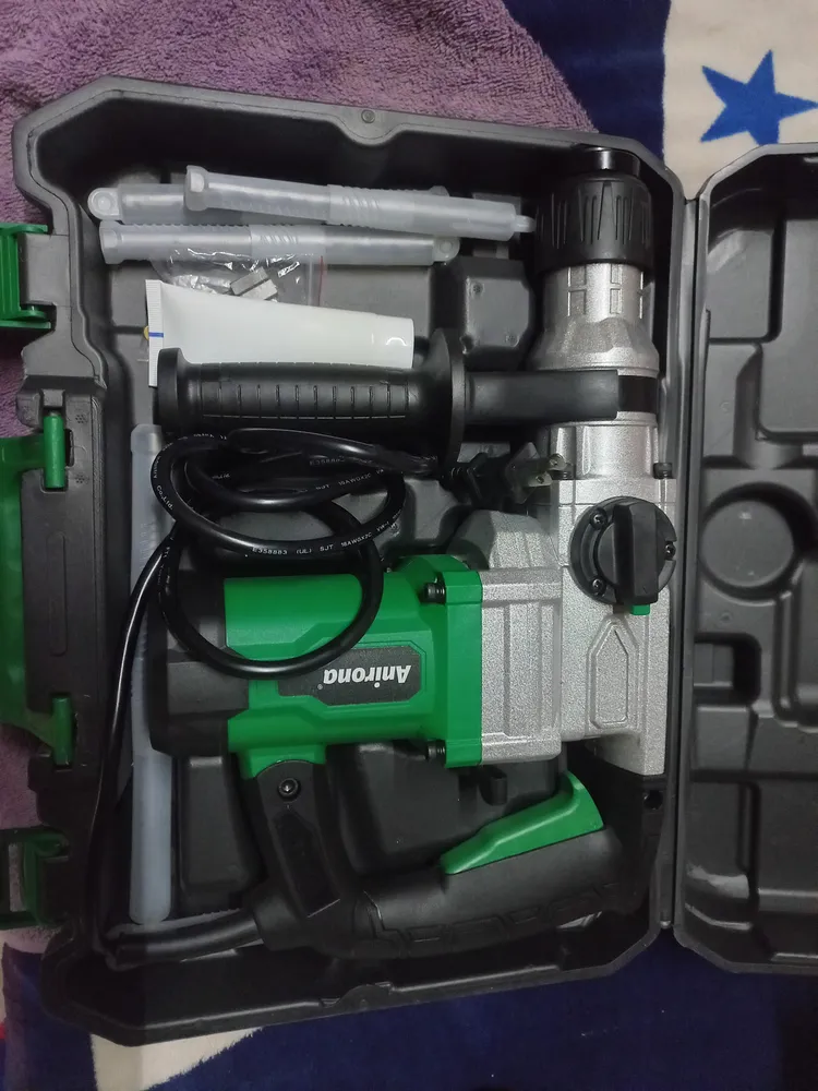 | Accesorios incluidos | 1 Grasa, 1 portabrocas, 1*Cincel ligero con punta de martillo, 1*Cincel plano martillo ligero, 1*Llave para tapa de depósito de lubricante, 2*Brochas de carbón, 3*Brocas de Sds-plus 8/10/12×150mm |