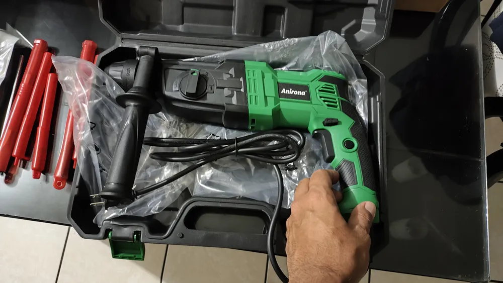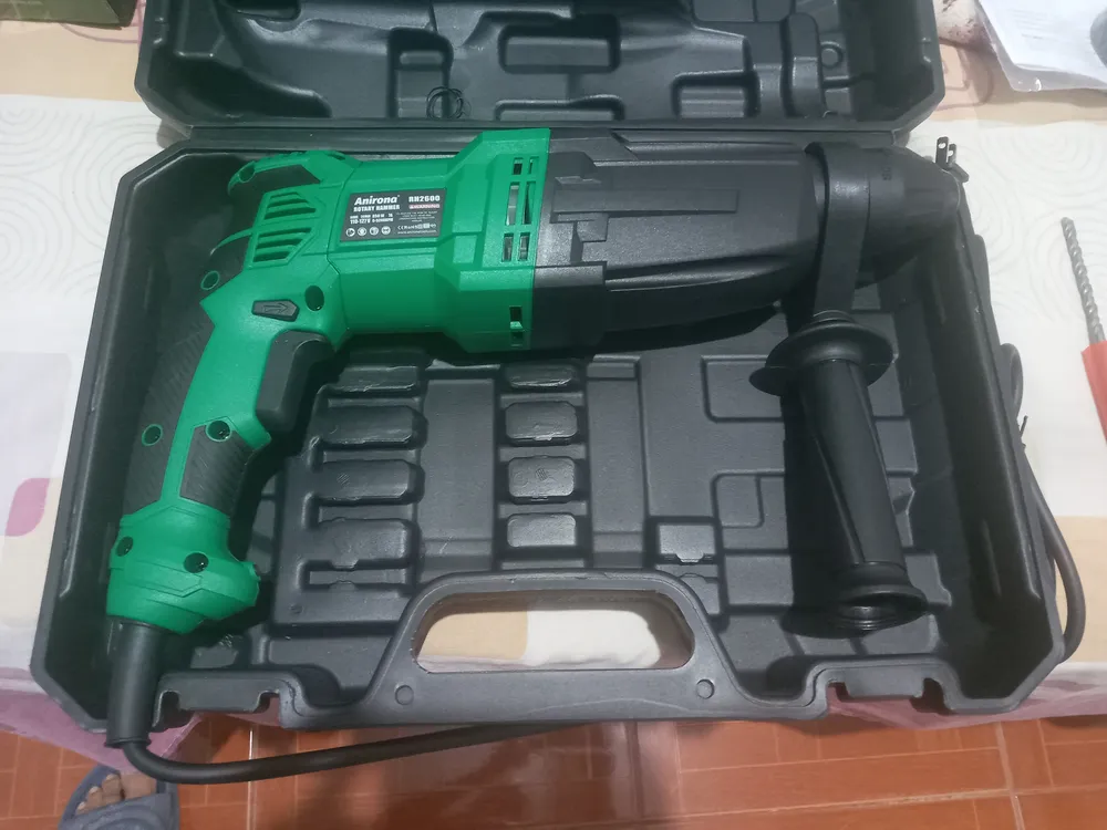 Rotomartillo Perforador Cincelador SDS 850W Anirona RH2600 Modelo: RH2600 Especificaciones técnicas: Mandril: SDS-Plus Voltaje: 127V Velocidad: 0-3600 RPM Modos de operación: Taladro, Rotomartillo, Cincelador Peso: 2.36 kilos Longitud de cable: 2m Aplicación: Tarea pesada Capacidad de perforación: Capacidad máxima de perforación en madera: 30mm Capacidad máxima de perforación en hormigón: 26mm Capacidad máxima de perforación en metal: 13mm SDS plus: SDS plus Chuck permite un cambio fácil y seguro de bits para mantener el proyecto en marcha. El mango a prueba de golpes de 360 está diseñado para reducir la fatiga de la mano y mejorar la precisión de perforación de la cara de trabajo. El diseño de la cerradura de Seguridad hace que la colocación sea más segura cuando no utiliza un taladro de martillo. El sistema de refrigeración único puede prolongar eficazmente su vida útil. Multifunción: Las tres funciones se conmutan por tres botones. Puede cambiar la posición del taladro, martillo