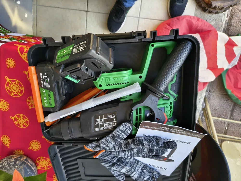 | Accesorios incluidos | 1 * martillo eléctrico + mango1 * bolsa de tela2 * batería1 * cargador8* taladros de impactomartillo cincelador lig |