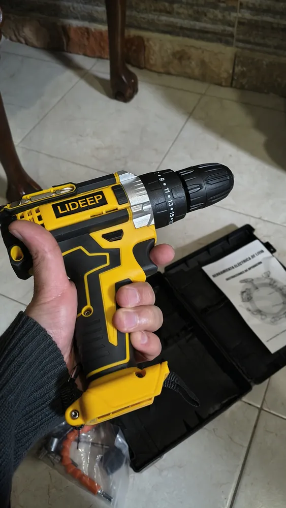 El taladro inalámbrico LIDEEP es una herramienta eléctrica profesional que cuenta con tres modos de funcionamiento: apriete, taladrado y percusión. Cumple sin esfuerzo con sus requisitos de trabajo. Todos nuestros productos se someten a rigurosas inspecciones de calidad y pruebas de seguridad antes de su venta, lo que refleja nuestro compromiso de fabricar productos de la mejor calidad para nuestros clientes. Ventajas principales del taladro inalámbrico LIDEEP: 1. Proporciona una fuerza de rotación suave y potente con un par máximo de 520 Nm. Con dos modos de velocidad variable (0-550 rpm y 0-1850 rpm), ofrece un control perfecto desde el arranque hasta la velocidad máxima, lo que evita eficazmente el agrietamiento del material o el deslizamiento de la broca. Ajuste la velocidad y el modo de funcionamiento según sea necesario para taladrar o retirar tornillos y pernos. 2. La luz LED integrada en el taladro ayuda a apuntar con precisión en entornos de trabajo oscuros. Equipada con dos