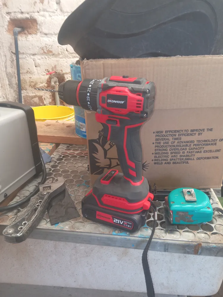 El taladro de impacto inalámbrico IRONHOOF es adecuado para taladrar madera, hormigón, metal, plástico y vidrio y se puede utilizar para apretar y aflojar tornillos fácilmente. Ideal para carpintería, patio, garaje, bricolaje y uso profesional. ESPECIFICACIÓN - Tamaño del mandril: 3/8 (10 mm) - Voltaje: 21 V - Motores: 4815 motores sin escobillas de cobre puro - Máx. Par: 520 N.m - Velocidad sin carga: 0 - 2800 RPM - Frecuencia de impacto: 0 - 3200 BPM - Capacidad de la batería: 7500 mAh x 2 Lista de productos - 1 × taladro inalámbrico - 1 × cargador rápido - 2 × batería de iones de litio - 1 × varilla flexible universal - 4 × llave Allen (6 mm, 8 mm, 10 mm, 12 mm) - 9 × Casquillo: 4 mm, 5 mm, 6 mm, 7 mm, 8 mm, 9 mm, 10 mm, 12 mm - 8 × Broca en espiral (30/40/50/60) - 2 × cabeza metálica Phillips - 2 × cabeza metálica unidireccional - 2 × cabeza metálica unidireccional - 1 × Lubricante - 1 × bolsa de pañuelos